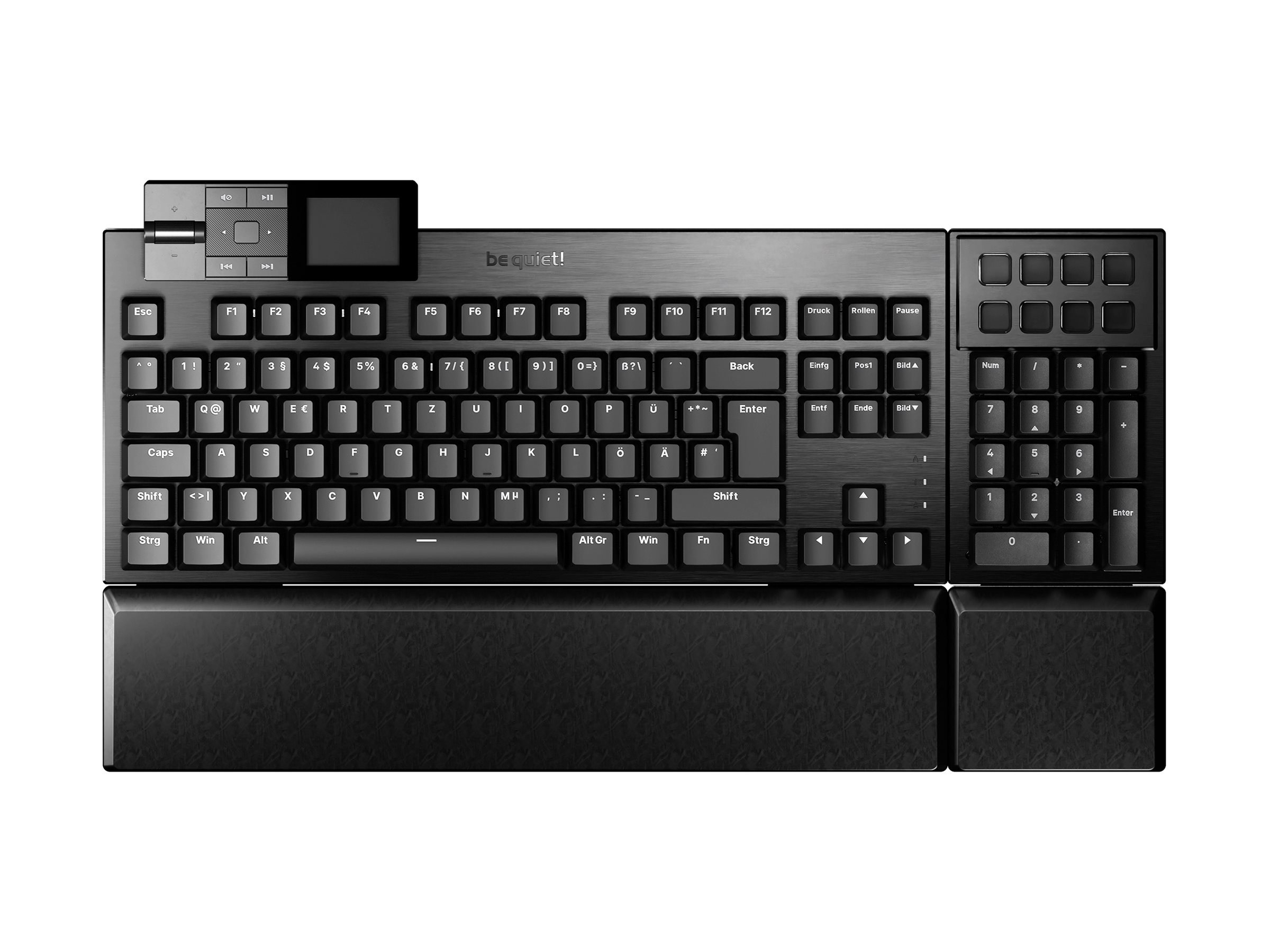 | Produktbeskrivelse | be quiet! Dark Mount - tastatur - 100% - med mediedock, tilpasselige displaytaster - QWERTZ - tysk - sort Indgangsudstyr |