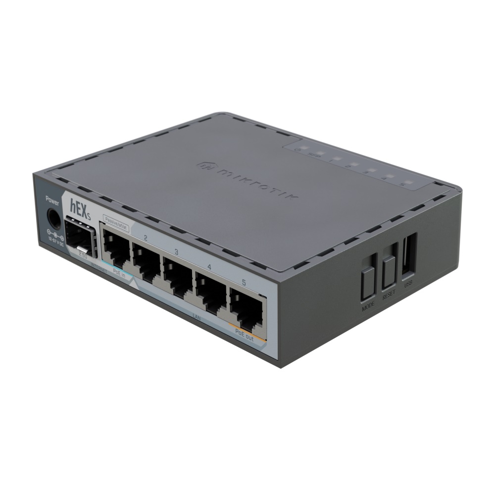 MikroTik hEX S (2025) E60iUGS - router - 5-port Gigabit RJ-45 out - 1x PoE in - 1x SFP 2.5Gb - 1x USB - RouterOS v7