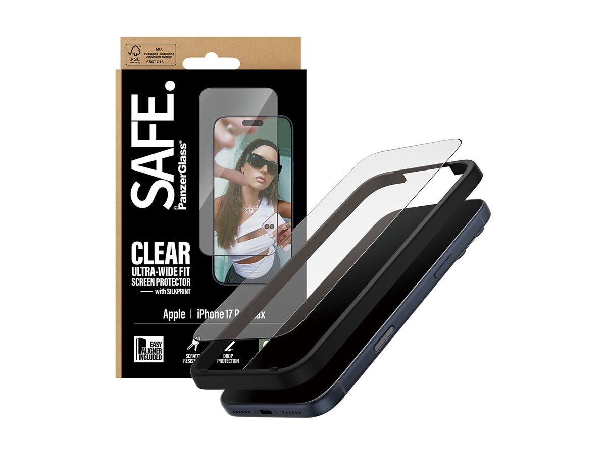 | Produktbeskrivelse | SAFE. by PanzerGlass - skærmbeskytter for mobiltelefon - med sort ramme, ultra-bred pasform, med EasyAligner |