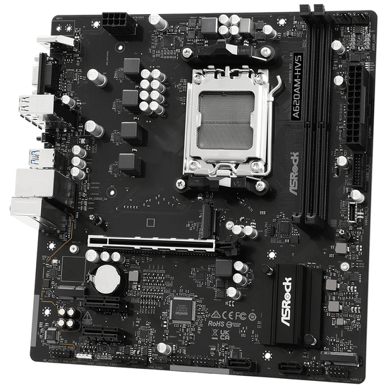 ASRock A620AM-HVS - Bundkort - micro ATX - Socket AM5 - AMD A620 Chipset - USB 3.2 Gen 1, USB-C 3.2 Gen 1 - Gigabit LAN - onboard grafik (CPU påkrævet) - HD Audio (8-kanaler)