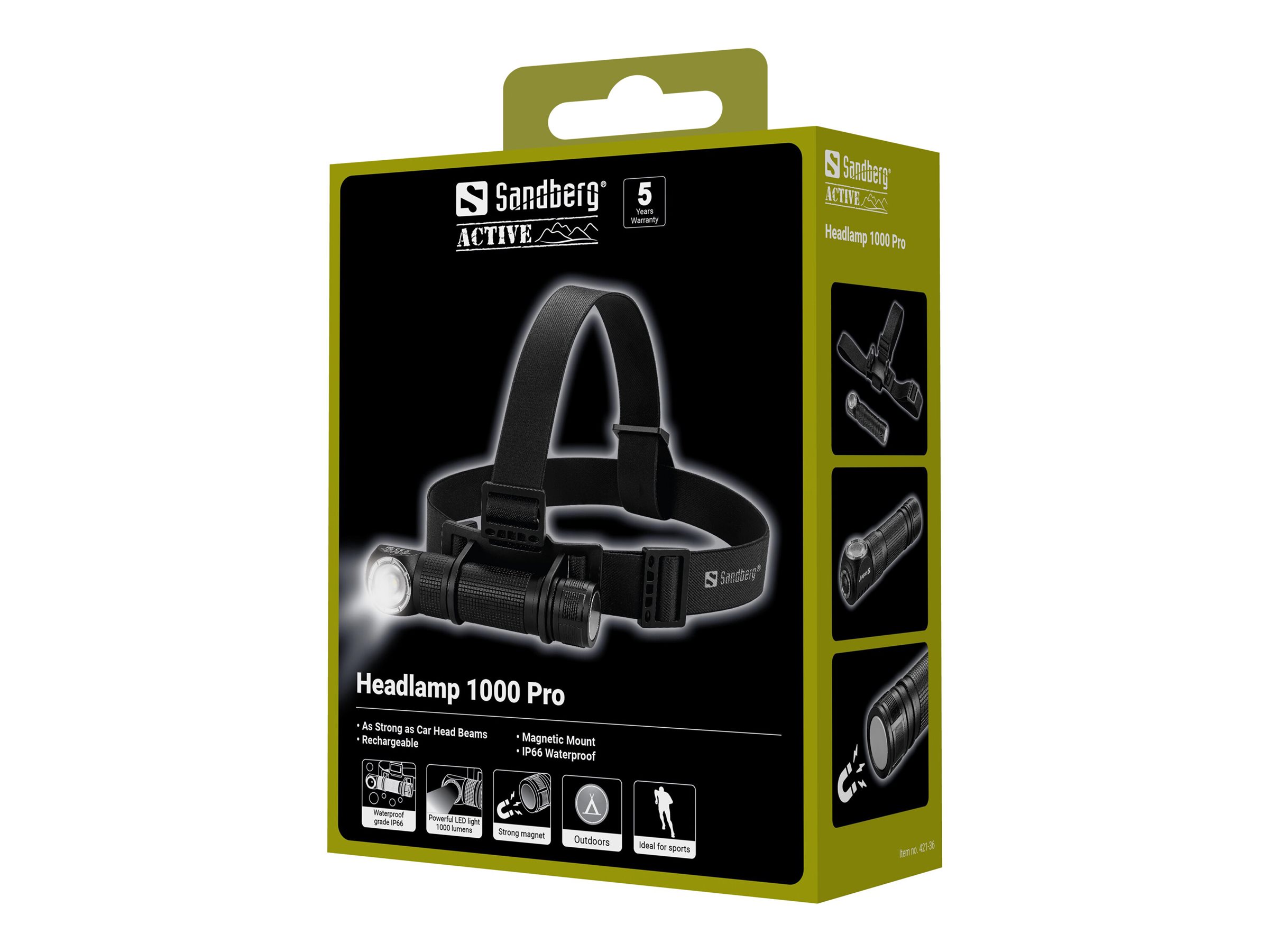 | Produktbeskrivelse | Sandberg Active 1000 Pro - lommelygte til hovedet - LED |