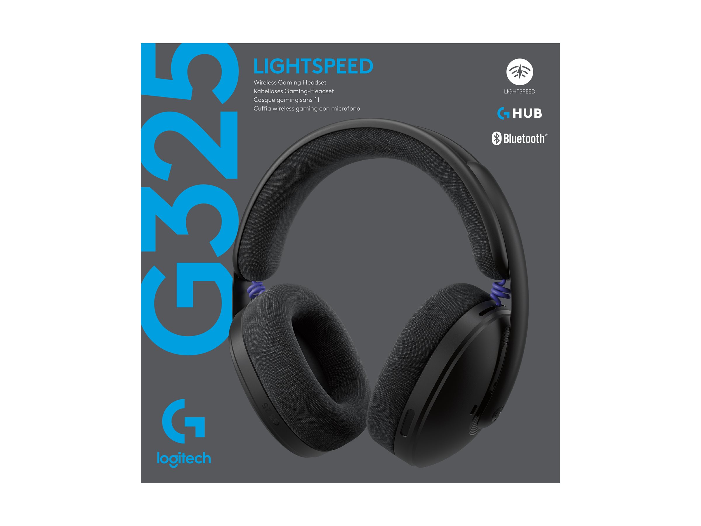 Logitech G G325 - Headset - fuld størrelse - over øret-montering - Bluetooth / LIGHTSPEED - trådløs - USB-C via Bluetooth adapter - sort