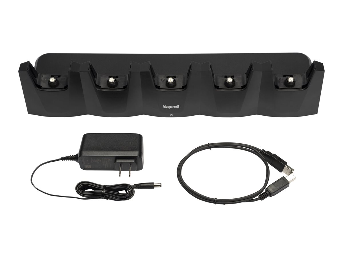Boost din produktivitet med BlueParrotts nye 5-slot opladningsbase. Denne station er designet til at gøre arbejdet lettere for dine teams og kan oplade op til fem BlueParrott-headset samtidigt* for at opfylde alle deres behov. En rød LED indikerer, når et headset oplades. Når enheden er fuldt opladet, bliver LED'en blå, så dine medarbejdere kan finde de rigtige enheder til at arbejde under de bedste forhold, og dine teams kan holde forbindelsen hele tiden. Fem opladningspladser for 5-stjernet effektivitet * Opladningstiden afhænger af headsettet.