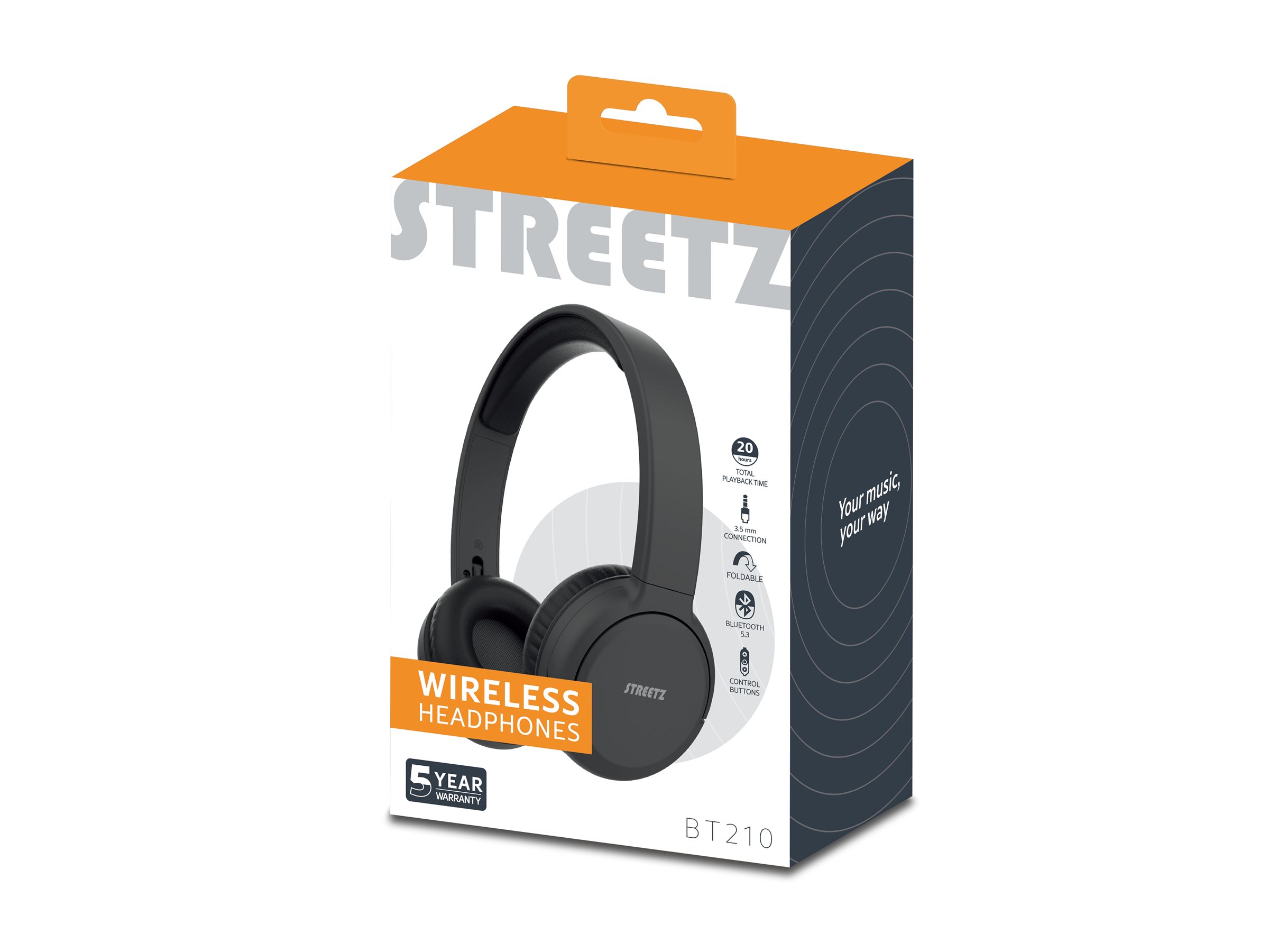 | Produktbeskrivelse | STREETZ BT210 - hovedtelefoner med mik. - 3,5 mm jackstik |