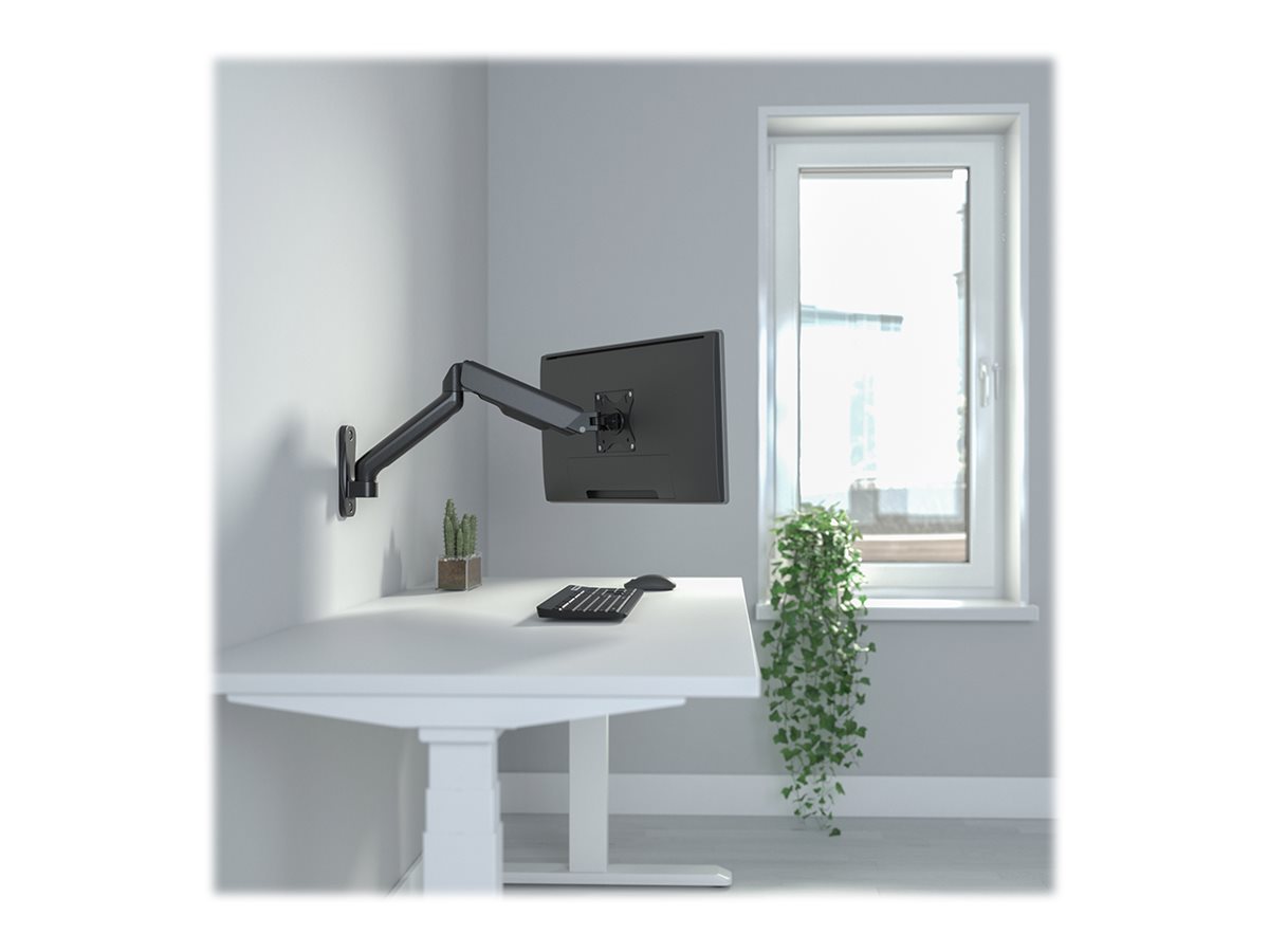 Opgrader dit hjemmekontor med det absolut bedste tilbehør. ARM-0360 fra DELTACO er en vægmonteret monitorarm, designet med en stilfuld aluminiumsoverflade og en første-klasses gasfjedermekanisme, der giver en perfekt stilling. Vip, drej og roter skærmen ubesværet, så den er i den ideelle ergonomiske position. Vægbeslaget kan slås 90 - 540 mm ud fra væggen, og er VESA-kompatibel med dimensionerne 75 x 75, 100 x 100, og det inkluderer anordning til ordning af ledninger.