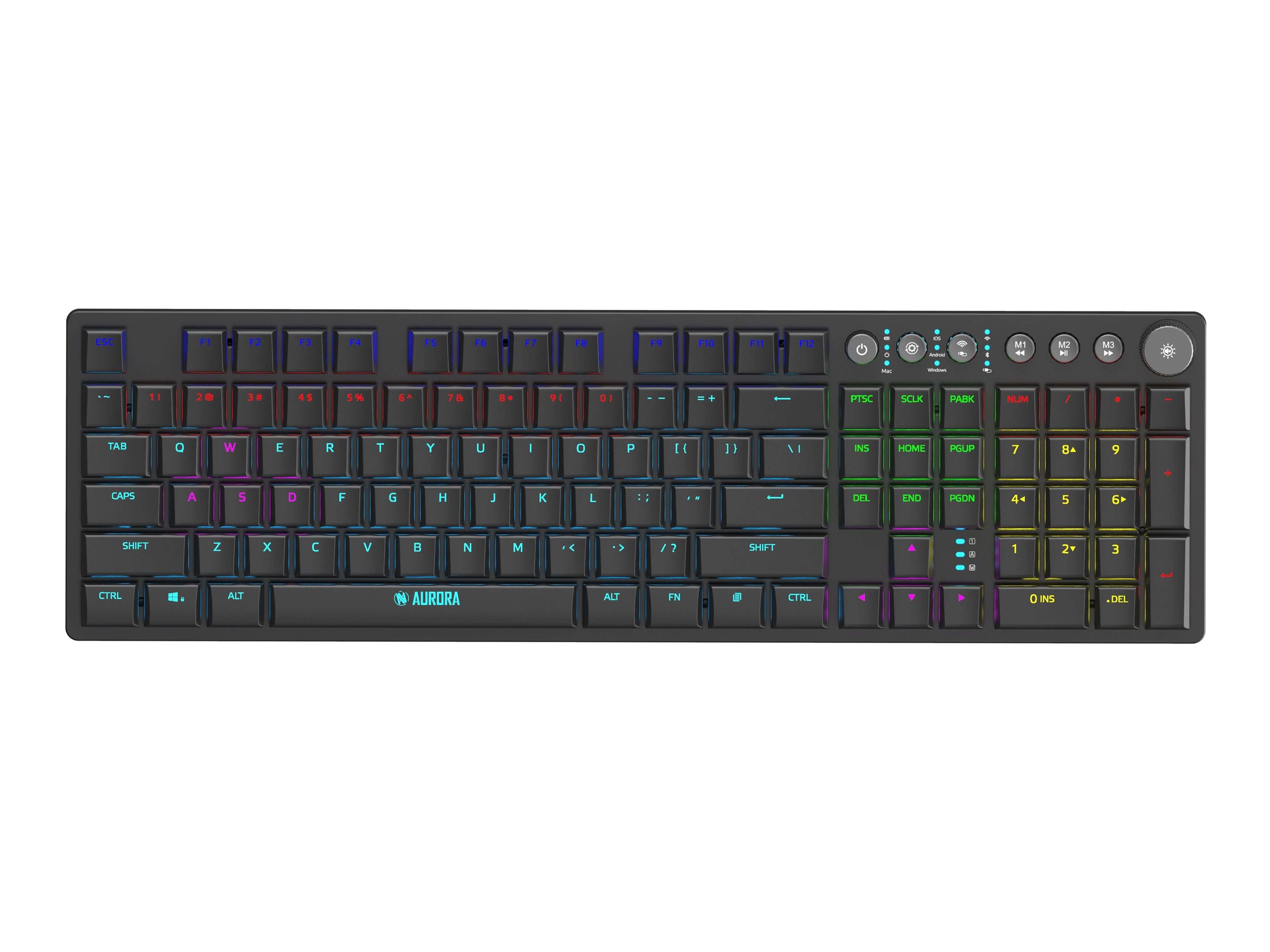 IBOX Aurora K-6 er designet til en effektiv skriveoplevelse på tværs af flere platforme, herunder Mac og Android. Dette mekaniske tastatur har en alsidig tilslutningsmulighed med valgmuligheder for kablet, trådløs og Bluetooth 5.0, hvilket sikrer integration med en række forskellige enheder. Med 104 taster og 7 multimedieknapper muliggør det effektiv navigation, mens n-key rollover tillader samtidig tastetryk uden ghosting. De lave KRGD Red-taster giver en responsiv fornemmelse, der er velegnet til både gaming og skrivning. LED-baggrundsbelysningen tilføjer et stilfuldt touch og forbedrer synligheden i mørke omgivelser.