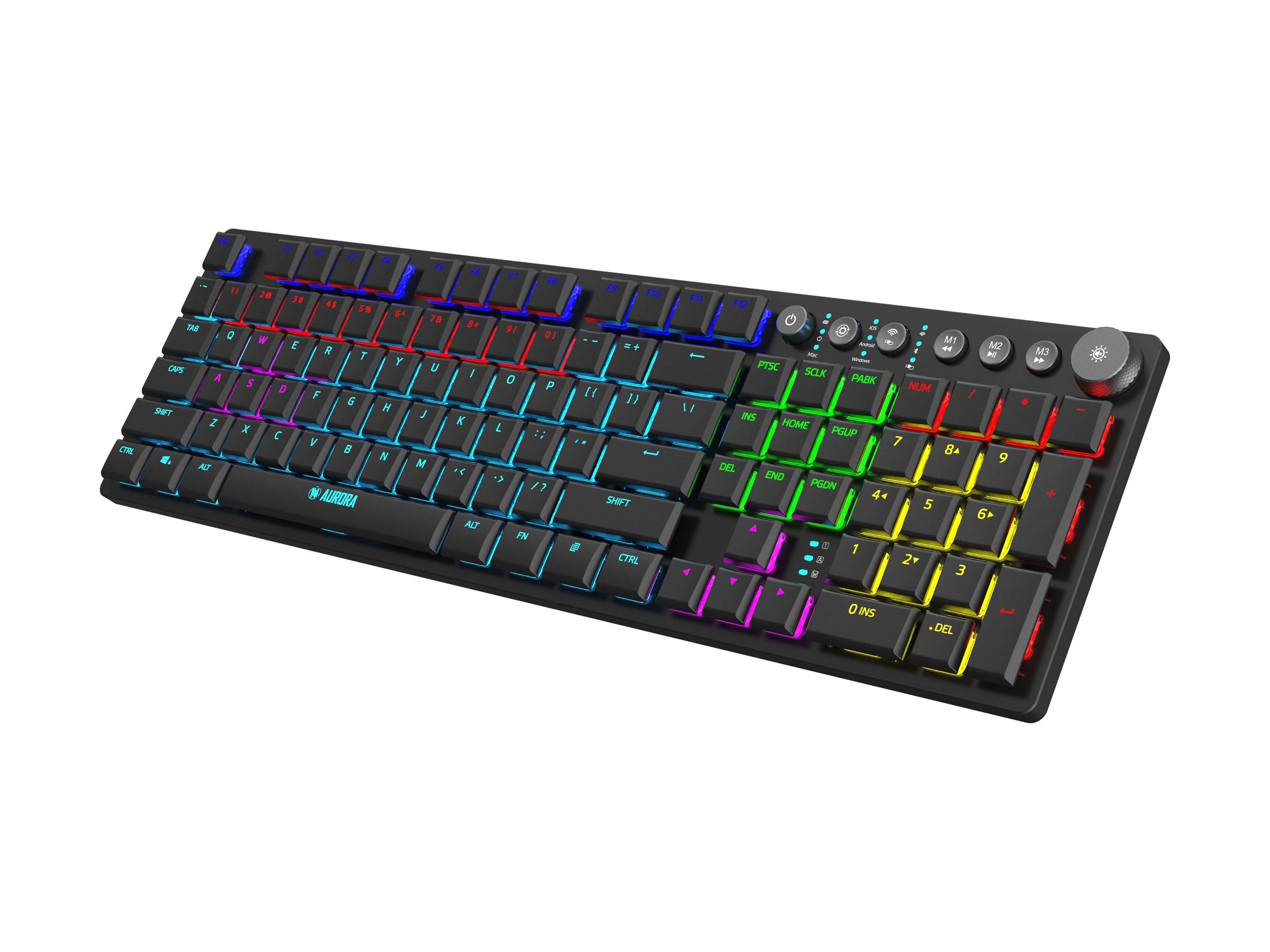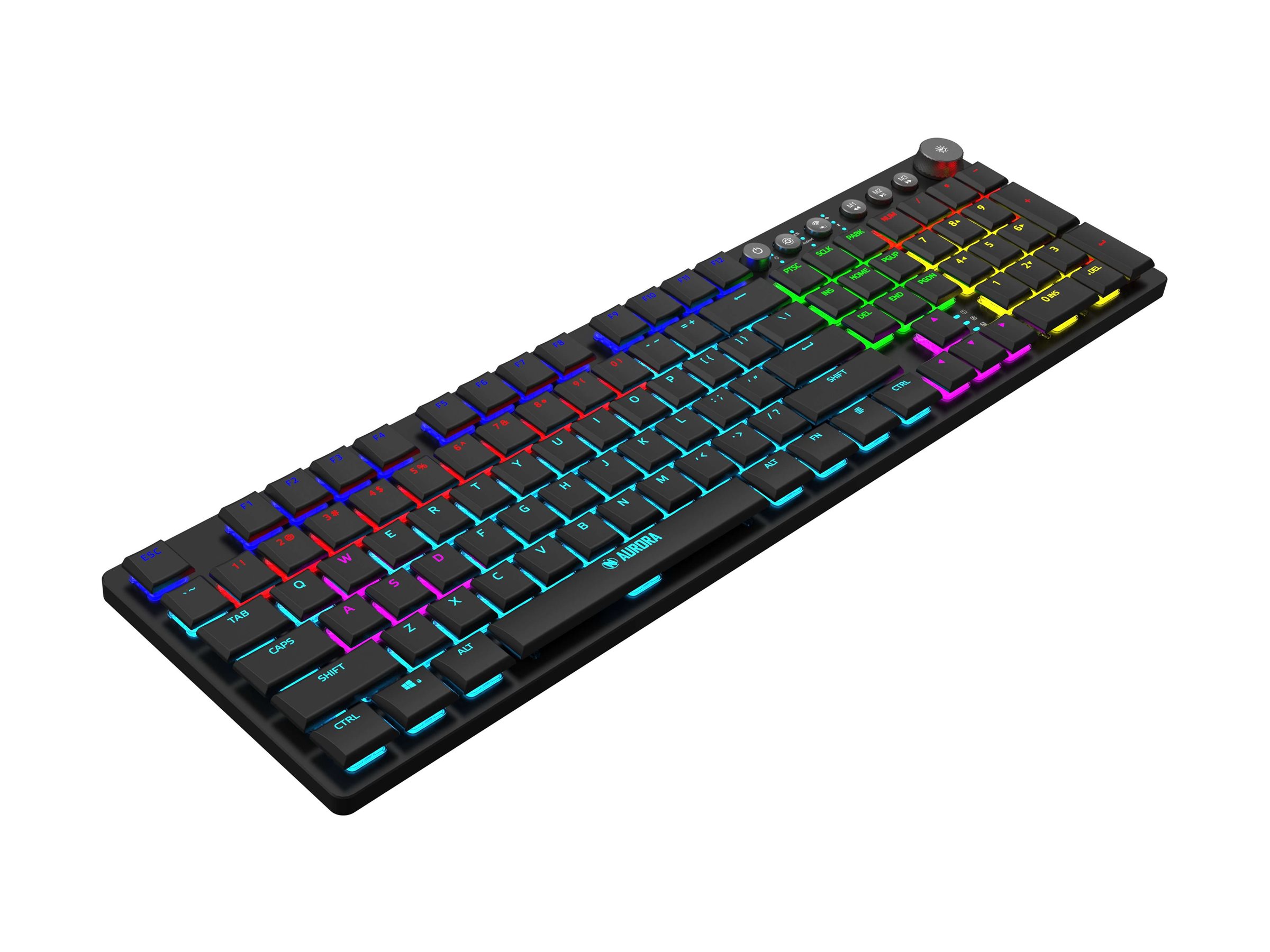 Aurora K-6 tilbyder flere tilslutningsmetoder, herunder kablet USB-C, 2,4 GHz trådløs og Bluetooth 5.0, hvilket giver fleksibel brug på tværs af forskellige enheder.