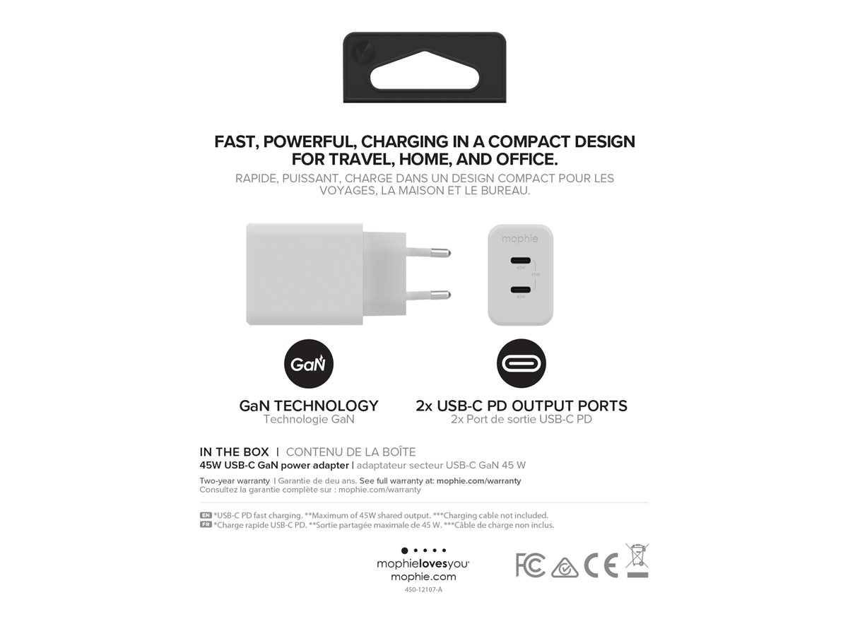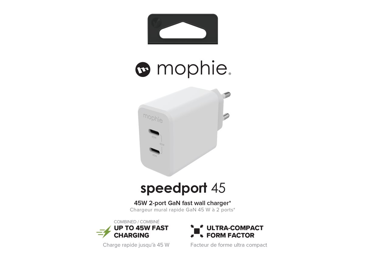| Produktbeskrivelse | mophie speedport 45 strømforsyningsadapter - USB-C - 45 Watt |