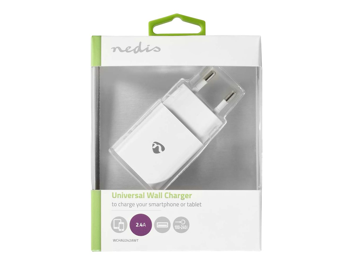 Nedis WCHAU242AWT - Strømforsyningsadapter - 12 Watt - 2.4 A (USB) - hvid