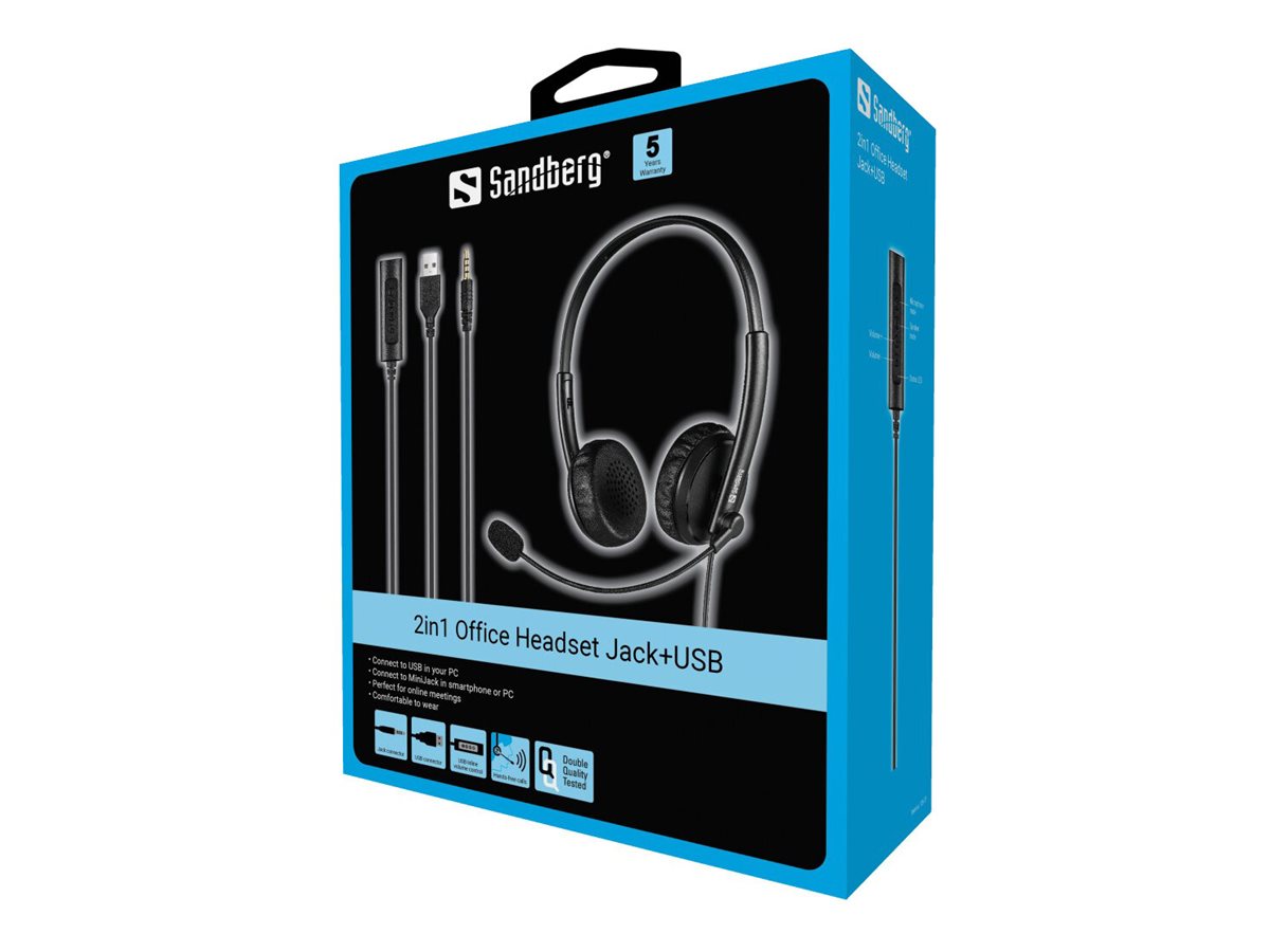 | Produktbeskrivelse | Sandberg 2in1 Office - headset - 3,5 mm jackstik, USB-A |
