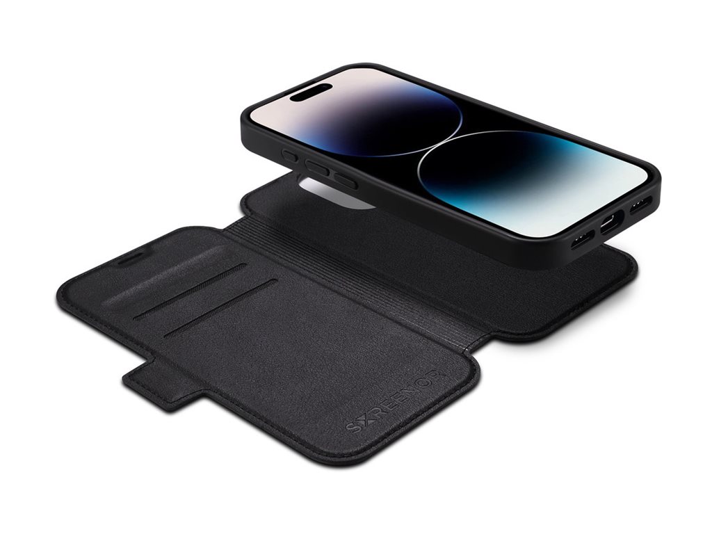 Screenor First - Flipomslag til mobiltelefon - 2 i 1 - MagSafe-kompatibilitet - ægte læder, termoplastisk polyuretan (TPU) - sort - for Apple iPhone 16