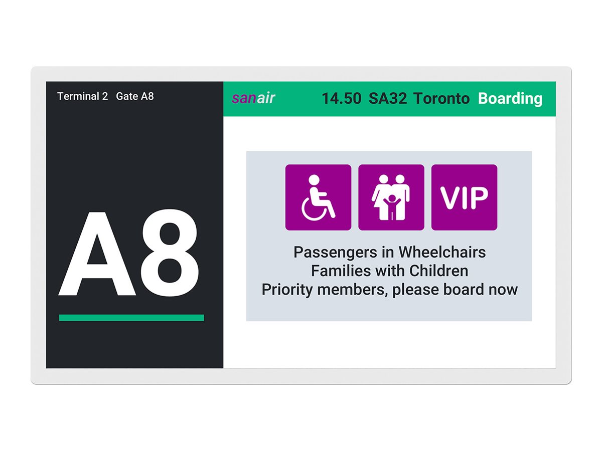 Sharp EP-C251 fra Sharp NEC Display Solutions sætter nye standarder for fjernsyn og fladskærme i kommercielle miljøer. Denne 25,3-tommer e-Paper-skærm, der er specielt designet til digital skiltning, tilbyder klarhed med sin opløsning på 3200 x 1800, hvilket sikrer, at hvert billede og hver tekst vises med skarpe detaljer.