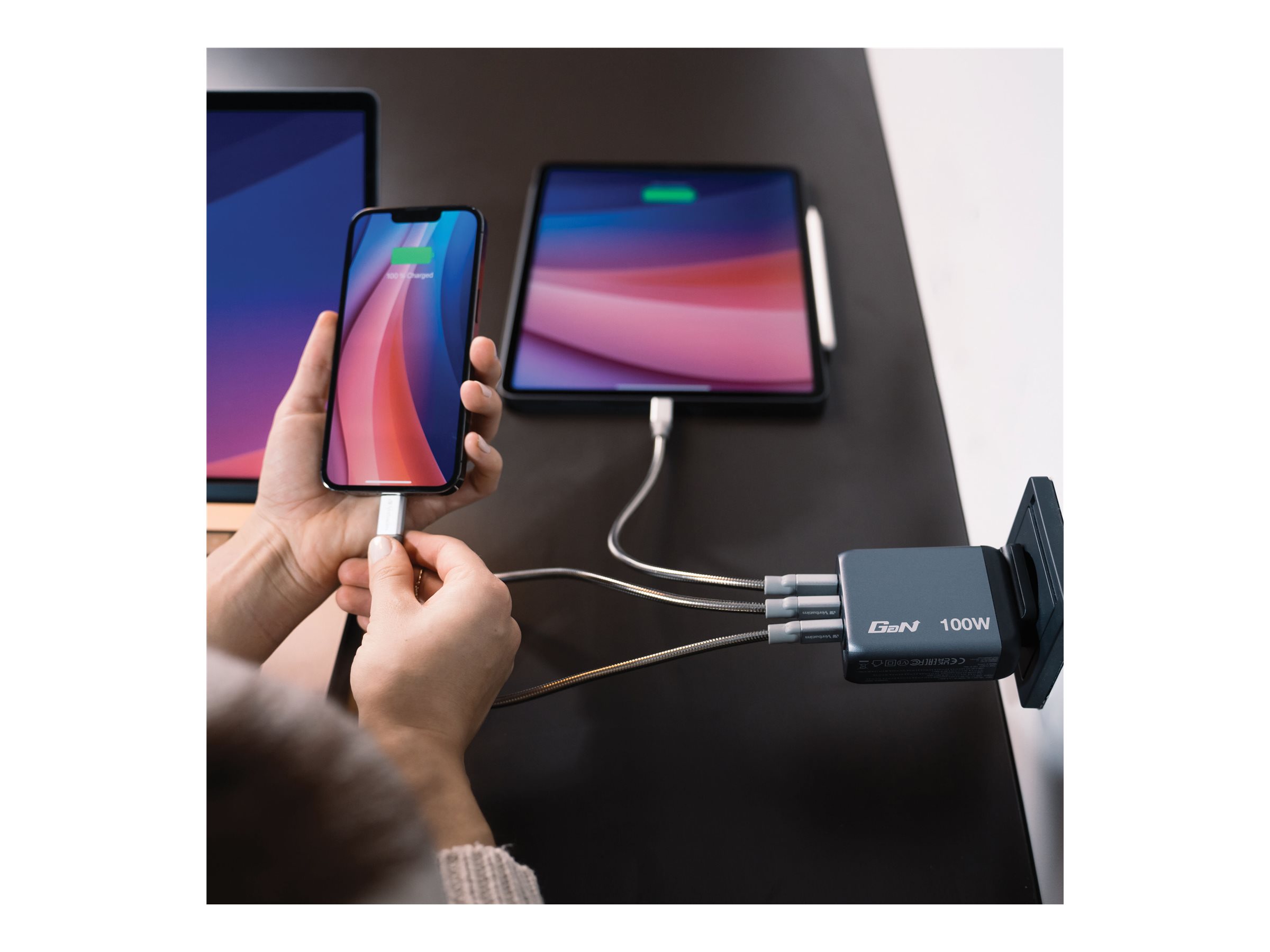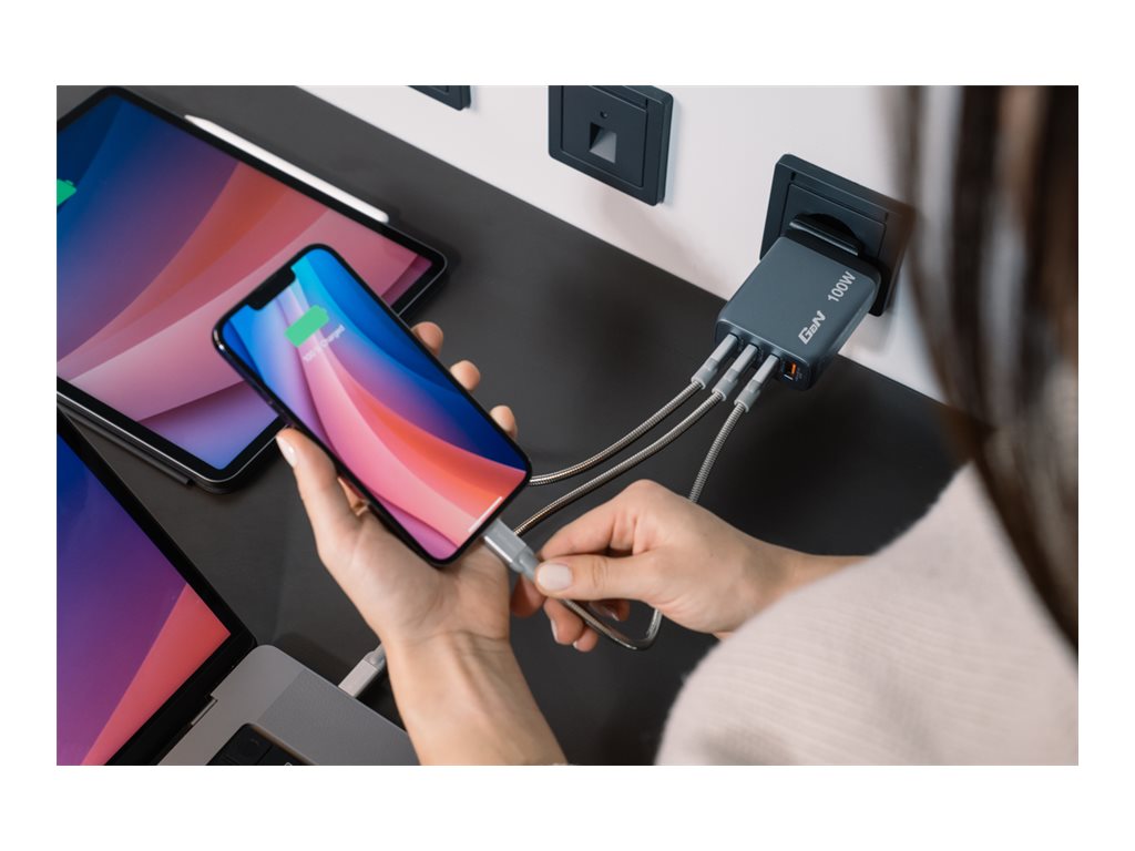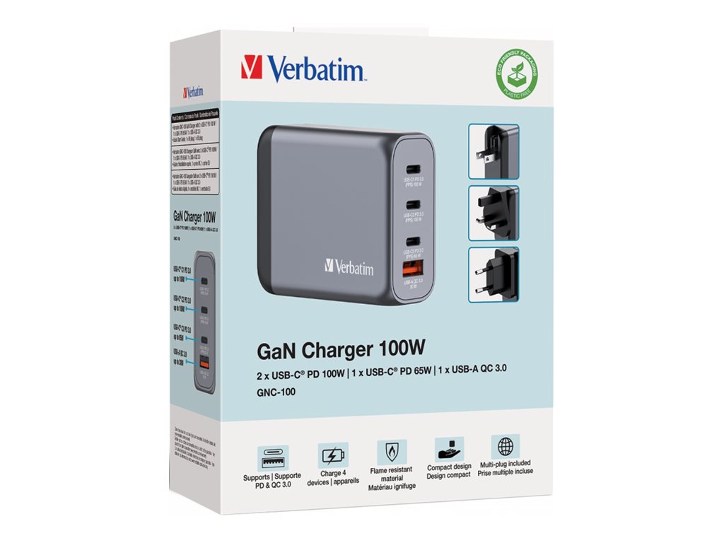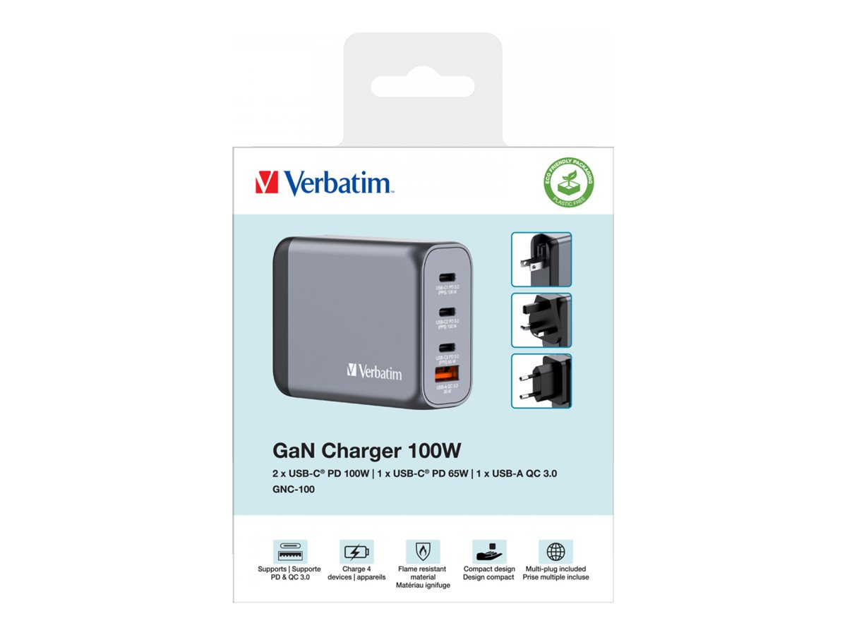 | Produktbeskrivelse | Verbatim strømforsyningsadapter - GaN - USB, 3 x USB-C - 100 Watt |